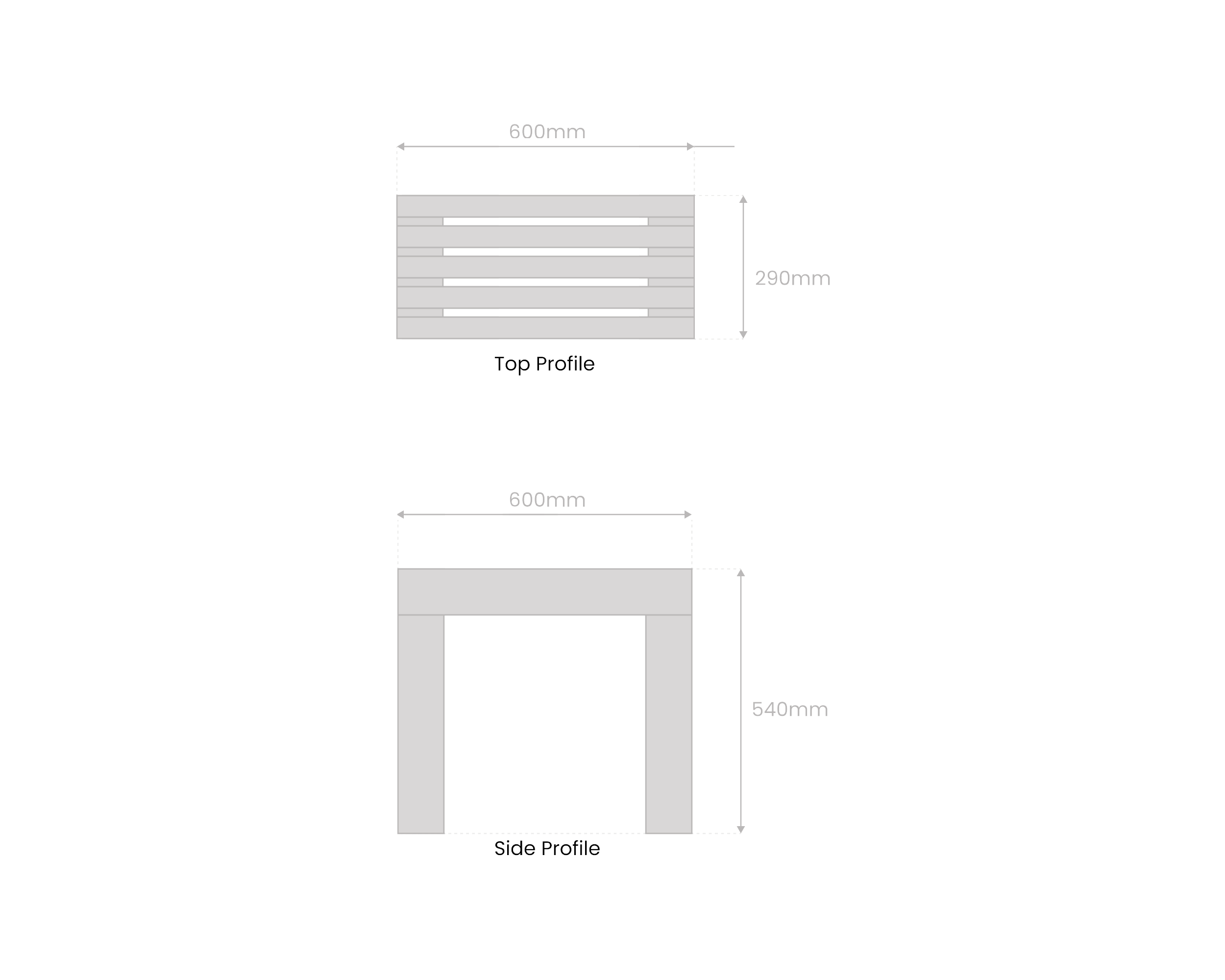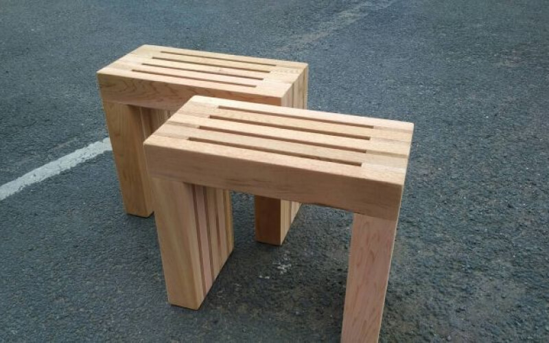 The small cedar stools measure 60cm wide x 29cm deep x 54cm high.