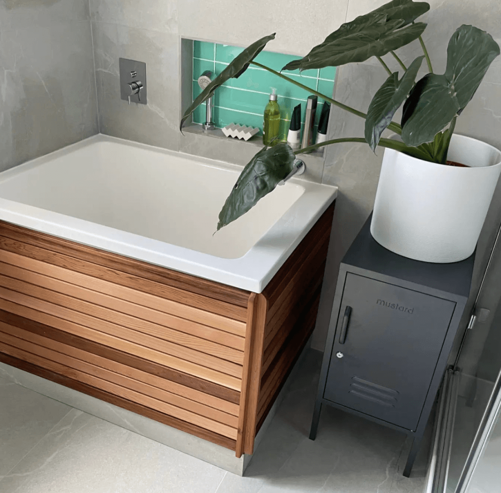 The 44mm cedar slats proved to be an ideal choice for this small bathroom project for their aesthetic qualities, durability, and eco-friendliness.?