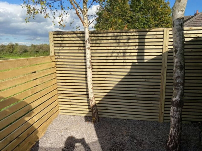 The customer opted for our range of standard slatted 1800mm x 1800mm pressure-treated panels with matching fence posts to ensure a sturdy boundary.