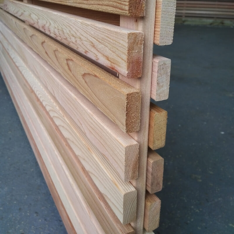 Cedar is an ideal timber to build our slatted panels and is full of natural oil; it helps safeguard against rot and decay. As a material, Cedar is also very lightweight and easy to handle; it is easy to cut, plane and sand.
