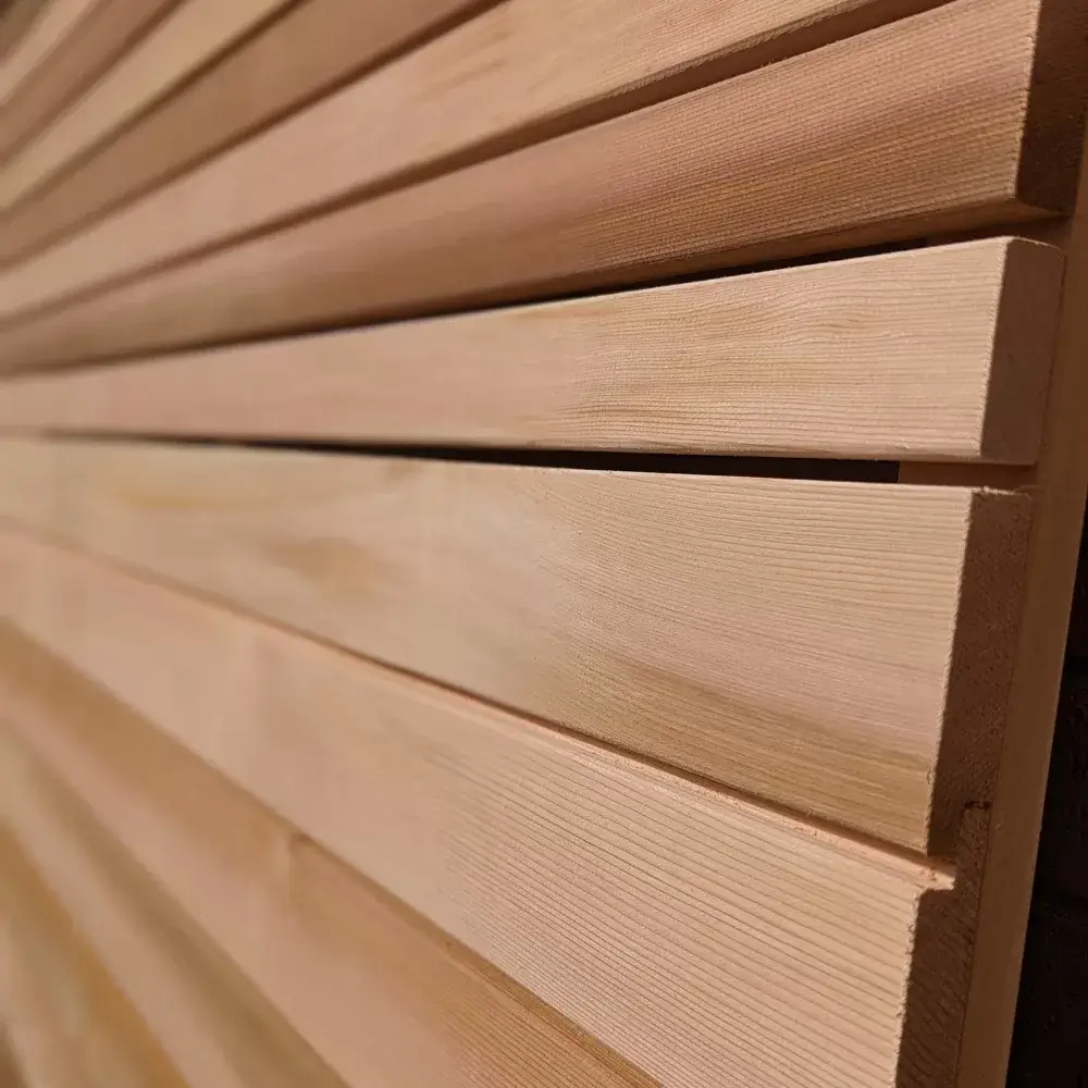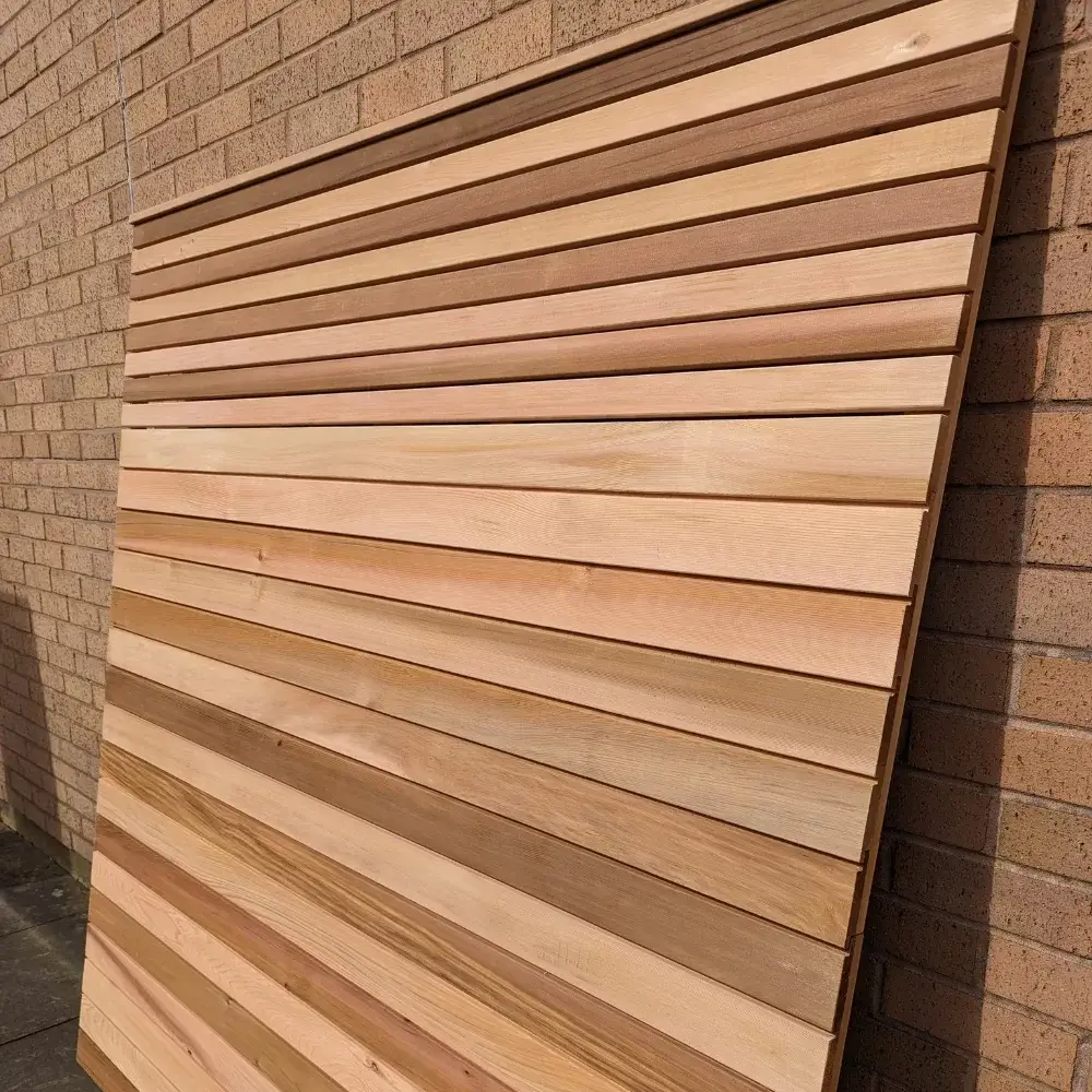 Crafted from premium Canadian cedar, the panel boasts a seamless front with no visible fixings, offering a sleek and sophisticated appearance.