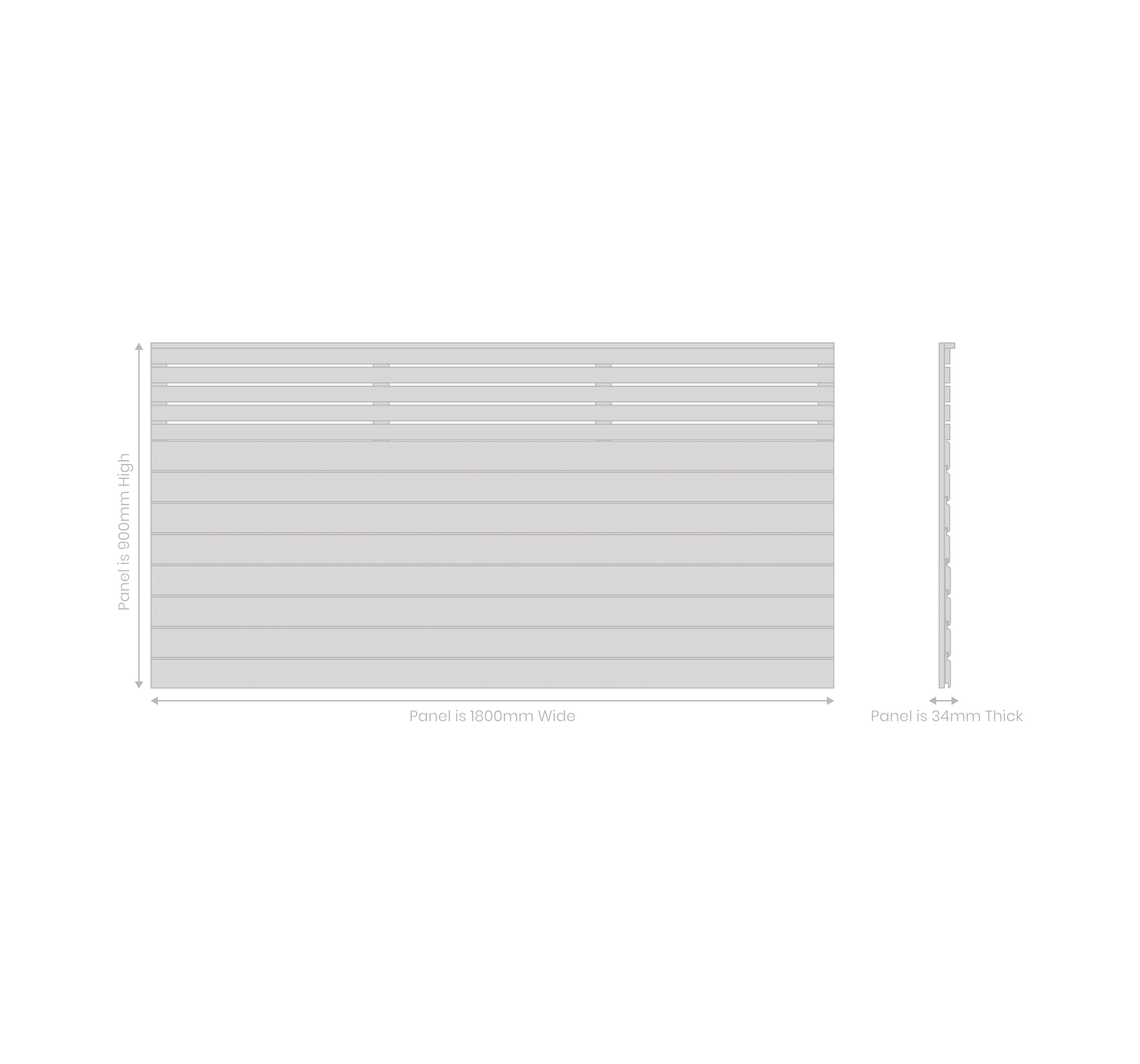 Please note: The panels (900mm in height upwards) will arrive in modular sections. This will allow each section to sit on top of the other until the desired height is met. Additionally, depending on the gap size chosen, each panel’s slatted top section is approximately 300mm to 360mm.
