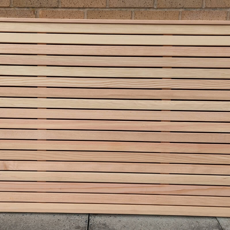 The 44mm Fir slats used to create the panels come with slightly rounded corners providing all customers with a premium finish similar to that of our cedar, Iroko, and Cambia alternatives.