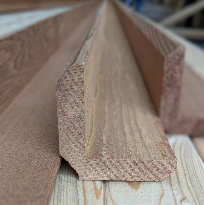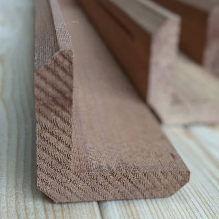 The cedar corner trim measures in at 45mm x 45mm x 2.44m