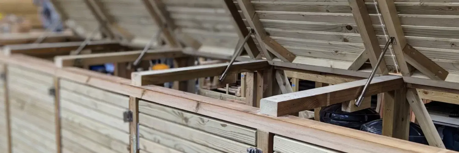 Each option is available in multiple styles, featuring various slats, cladding boards, and optional features such as roof access, lid stays and more, resulting in an elegant finish that matches our range of fence panels, gates pergolas and more.