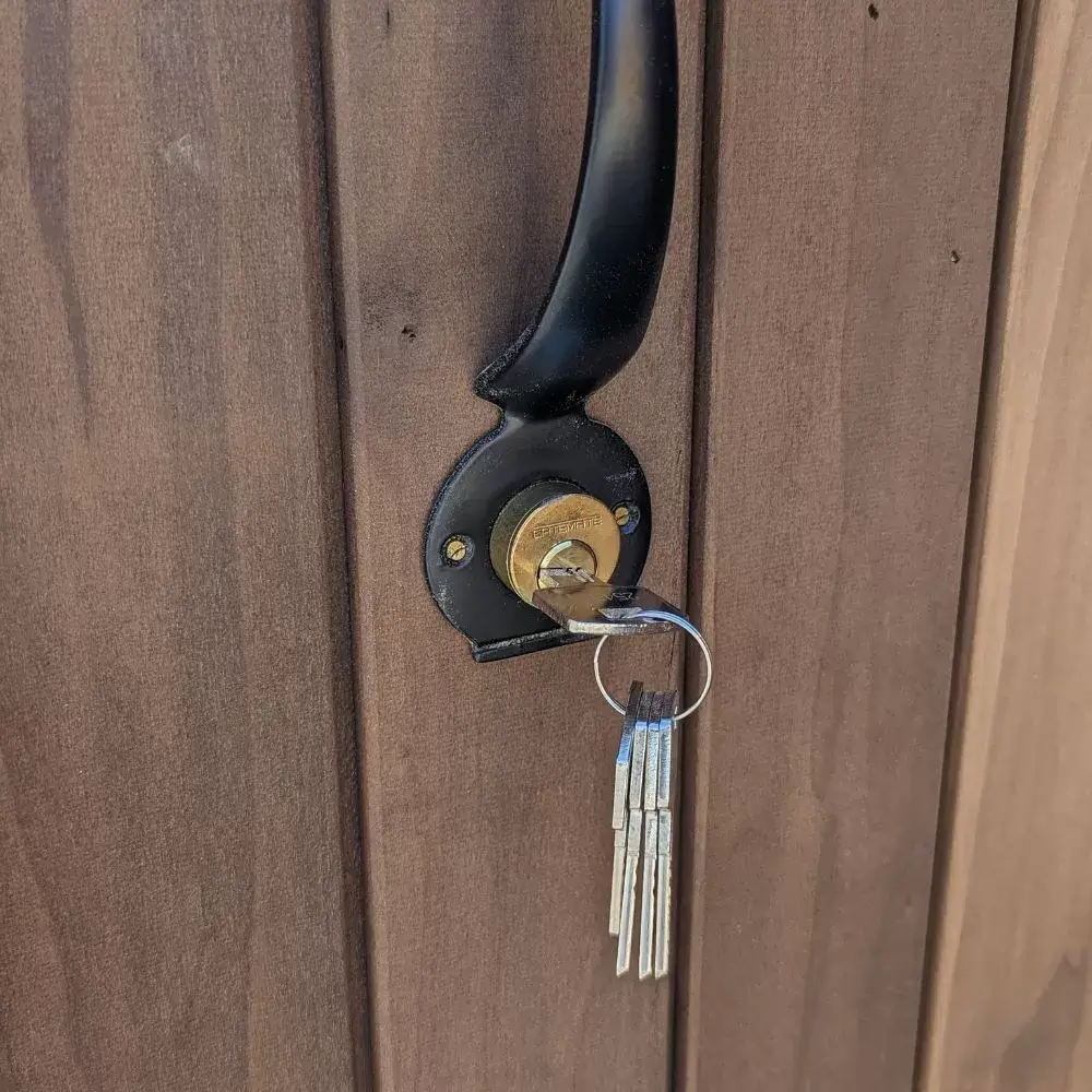 Each store is equipped with an internal steel pole designed to lock your bikes or other garden equipment securely. The key lock system allows you to lock with a key, a better security than a traditional pad lock, which comes additional spare keys.