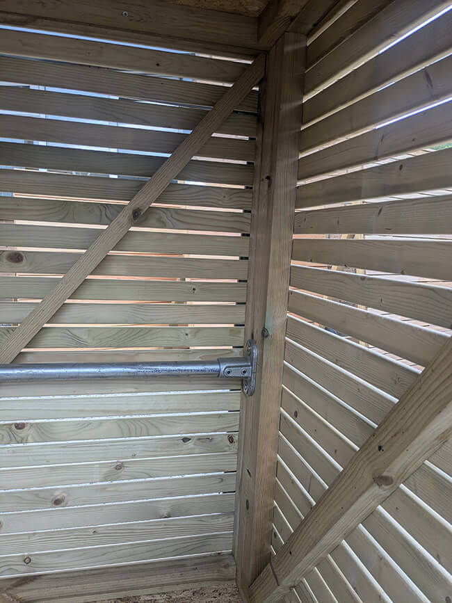 The felt roofing system ensures that the bike store timbers remain unaffected by snow and rain.