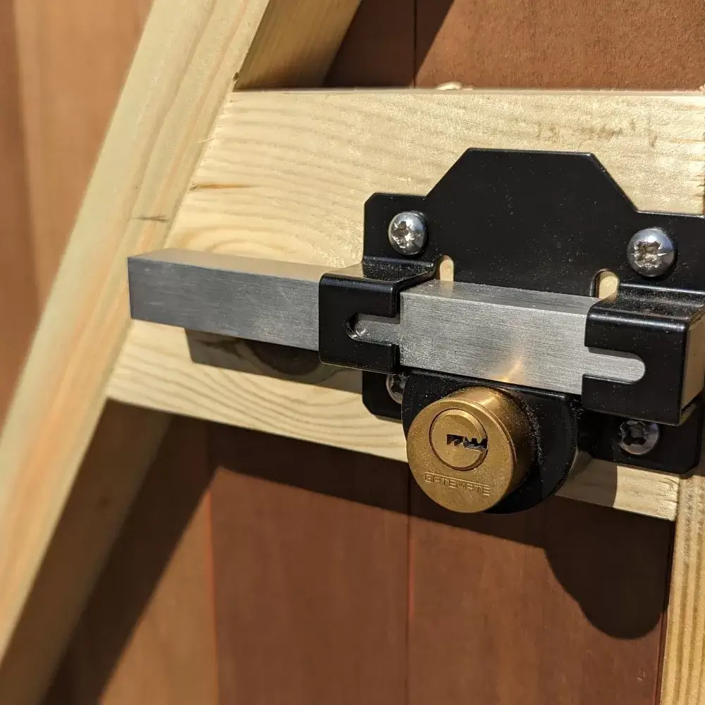 The locks used are heavy-duty stainless steel locks made by trusted brand, GateMate.
